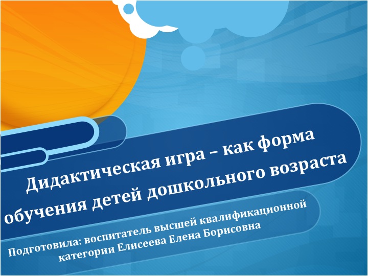 Педагогический совет. Выступление на тему "Дидактическая игра - как форма обучения детей дошкольного возраста"
