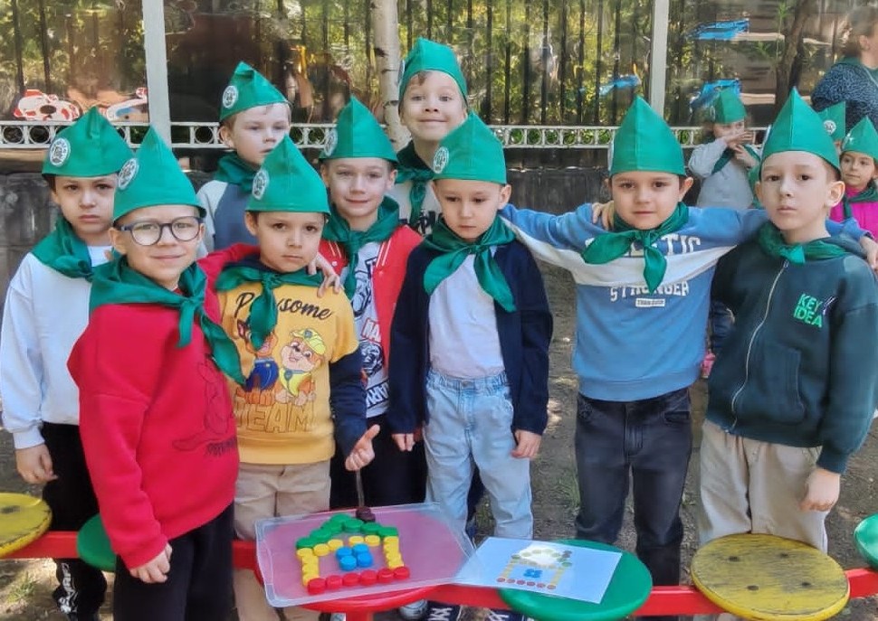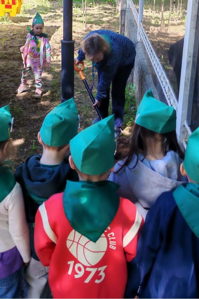 Участие в экологическом субботнике с воспитанниками и их родителями. Посвящение воспитанников в зелёные пионеры.