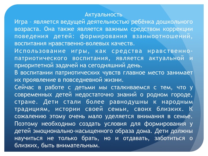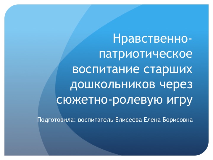 Педагогический совет. Выступление на тему "Нравственно-патриотическое воспитание старших дошкольников через сюжетно-ролевую игру"