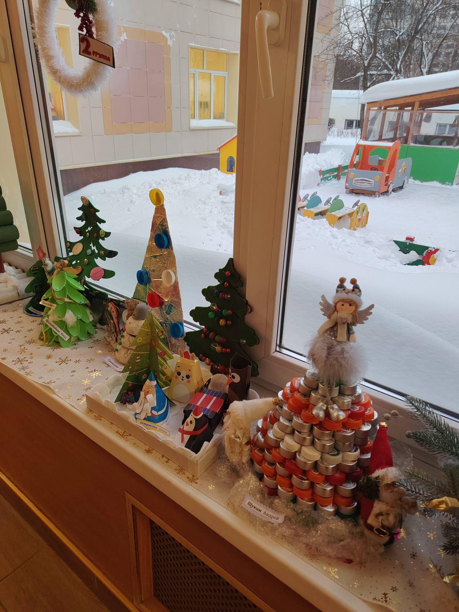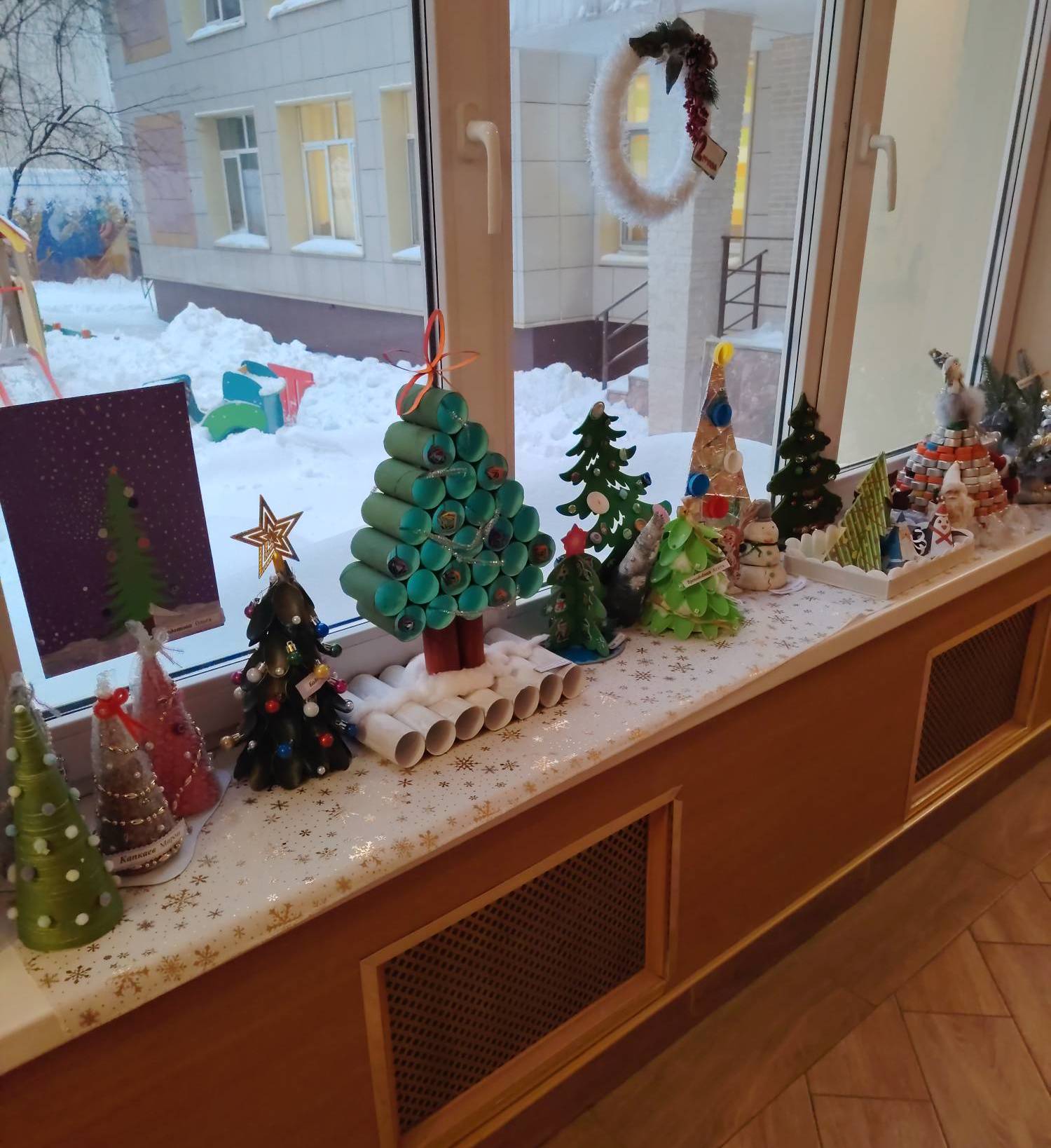 Выставка поделок родителей с детьми из бросового материала "Ёлочка"